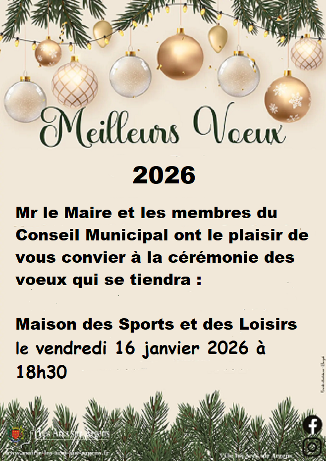 Monsieur le Maire , les conseillers municipaux et les salarié(e)s de la commune vous présentent leurs meilleurs vœux pour cette nouvelle année : de beaux projets, du sourire et de jolis moments de bonheur . Et bien sûr la meilleure santé possible !