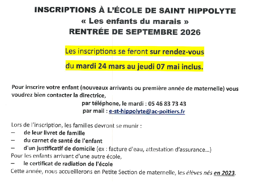 Inscriptions scolaires Rentrée de septembre 2026 : c’est parti ! Facebook Twitter LinkedIn Email Imprimer